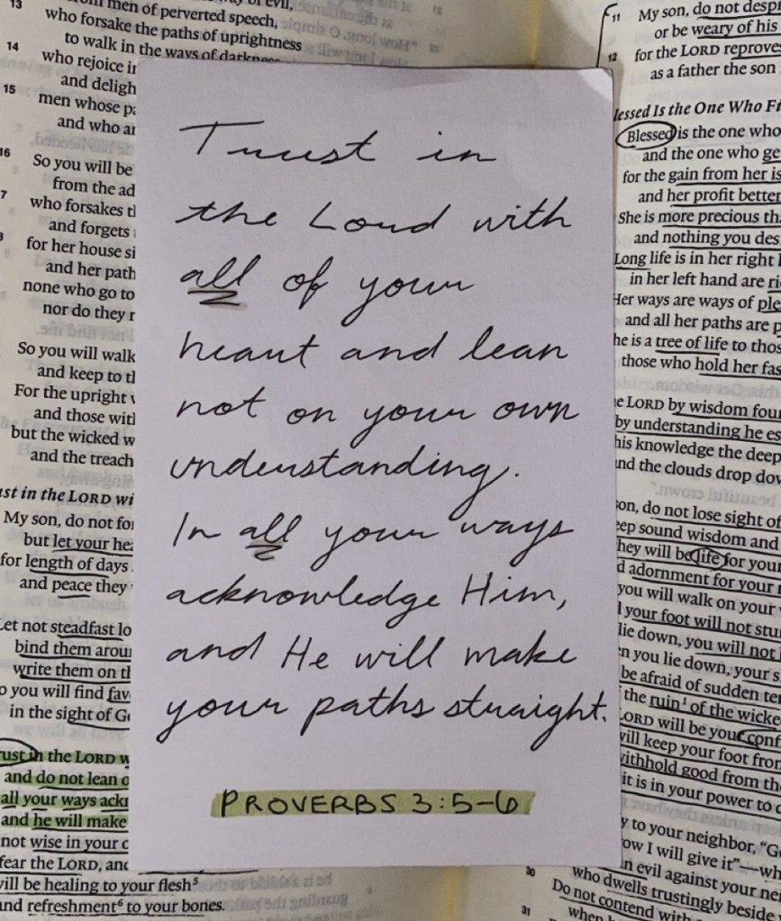 Recently, I decided that I needed to be more proactive in reminding myself of His steadfastness. When I find it troubling to trust Him—even in little things—I take out a notecard with Proverbs 3:5-6 written on it, and I read it to myself. I encourage you to find a way to remind yourself of His steadfastness when you struggle to trust Him.